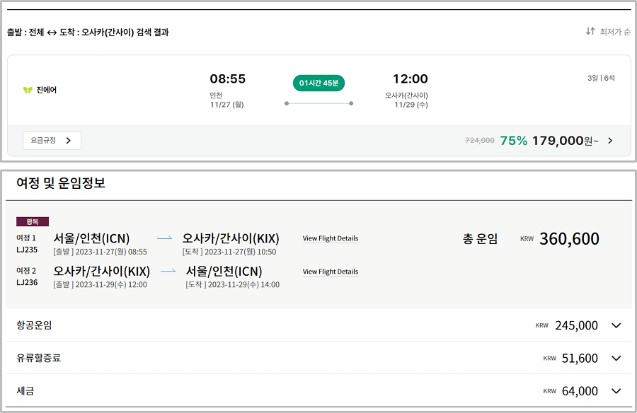 오사카 항공권 구입 꿀팁입니다.