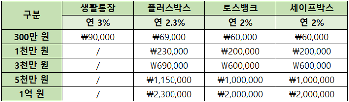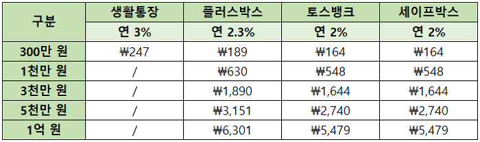 2. 파킹통장 금리비교 (인터넷뱅킹 3사)