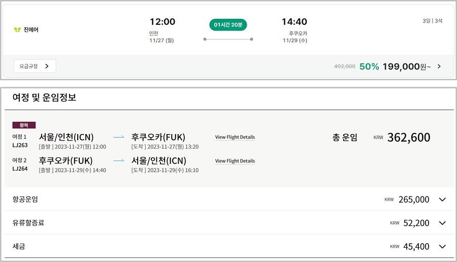 이것은 이후 설명하는 특가항공권, 공동구매 항공권 등에도 모두 공통적으로 적용됩니다.