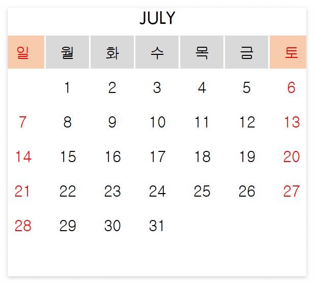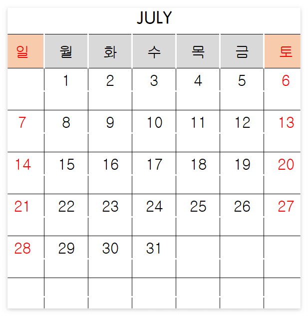 ▣ 7월에는 휴일이 없어요. 연차라도 한 번 사용해야겠네요.