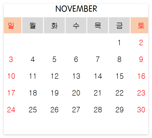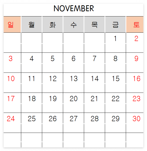 ▣ 11월에는 휴일이 없어요. 연차라도 한 번 사용해야겠네요.