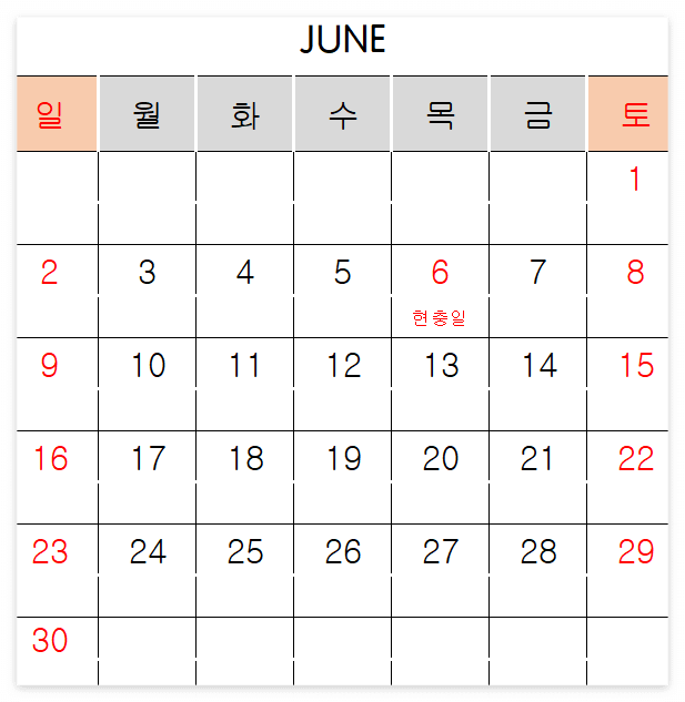 ▣ 6월 6일(목): 현충일. 6월 7일(금)에 연차를 사용 시, 4일 동안 쉴 수 있습니다.